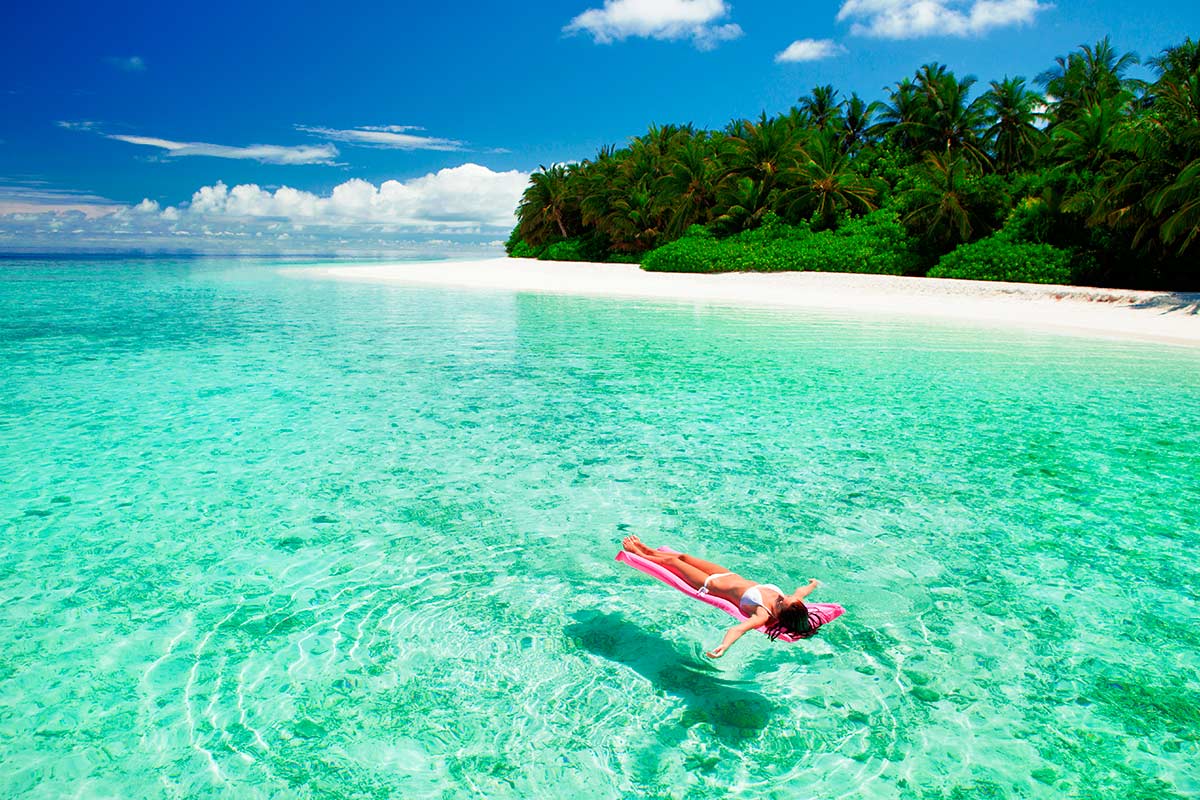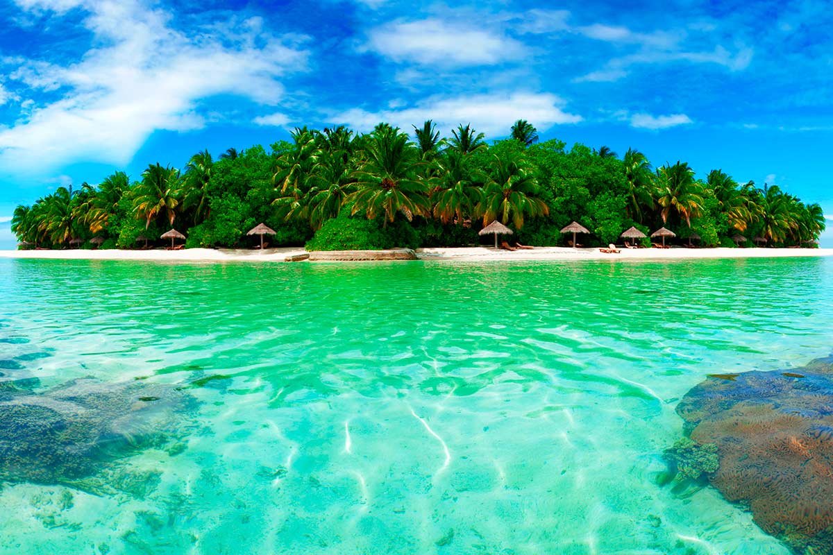 Endlose weiße Strände, azurfarbene Lagunen, strahlend blauer Himmel und ein beruhigendes Rauschen der Palmen – das sind die Malediven. Ein Paradiese für Taucher, Schnorchler, Kitesurfer und Ruhesuchende. Bereits der Anflug auf die Flughafeninsel Hulhulé, welche direkt gegenüber der Hauptstadt Malé liegt, wird Dir den Atem verschlagen. Im strahlenden Sonnenschein liegen unzählige Eilande im Ozean verstreut. Rund zweihundert dieser Inseln sind bewohnt, und mehr als neunzig Inseln dienen als paradiesische Ziele für den Urlaub auf den Malediven.